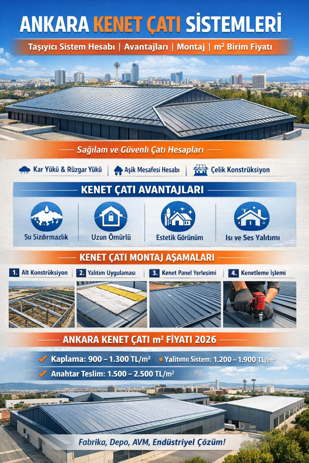 - Ankara kenet çatı sistemleri; dayanıklılık, uzun ömür, estetik görünüm ve su sızdırmazlık açısından en güvenilir çatı sistemlerinden biridir. Ancak doğru mühendislik hesabı ve uzman ekip ile uygulanmalıdır.