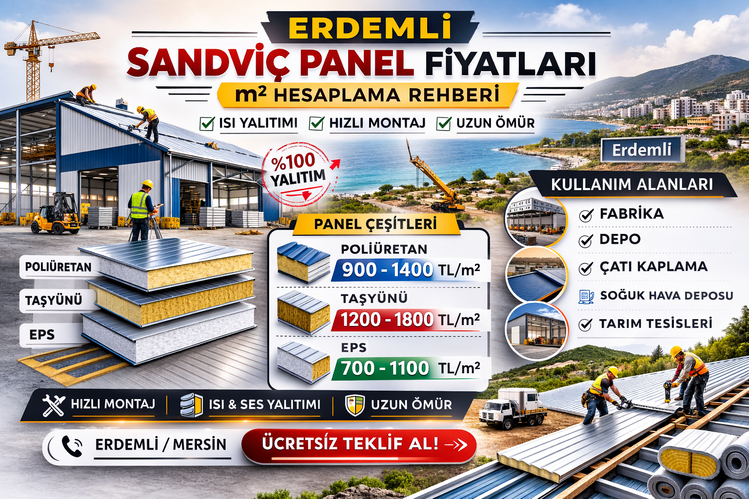 Mersin İlçesi Erdemli Sandviç Panel Fiyatları| m² Hesaplama Rehberi